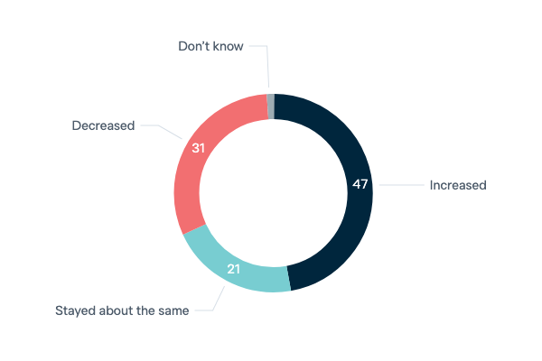 Compared to ten years ago, do you feel that Western influence around the world has increased, decreased, or has it stayed about the same?